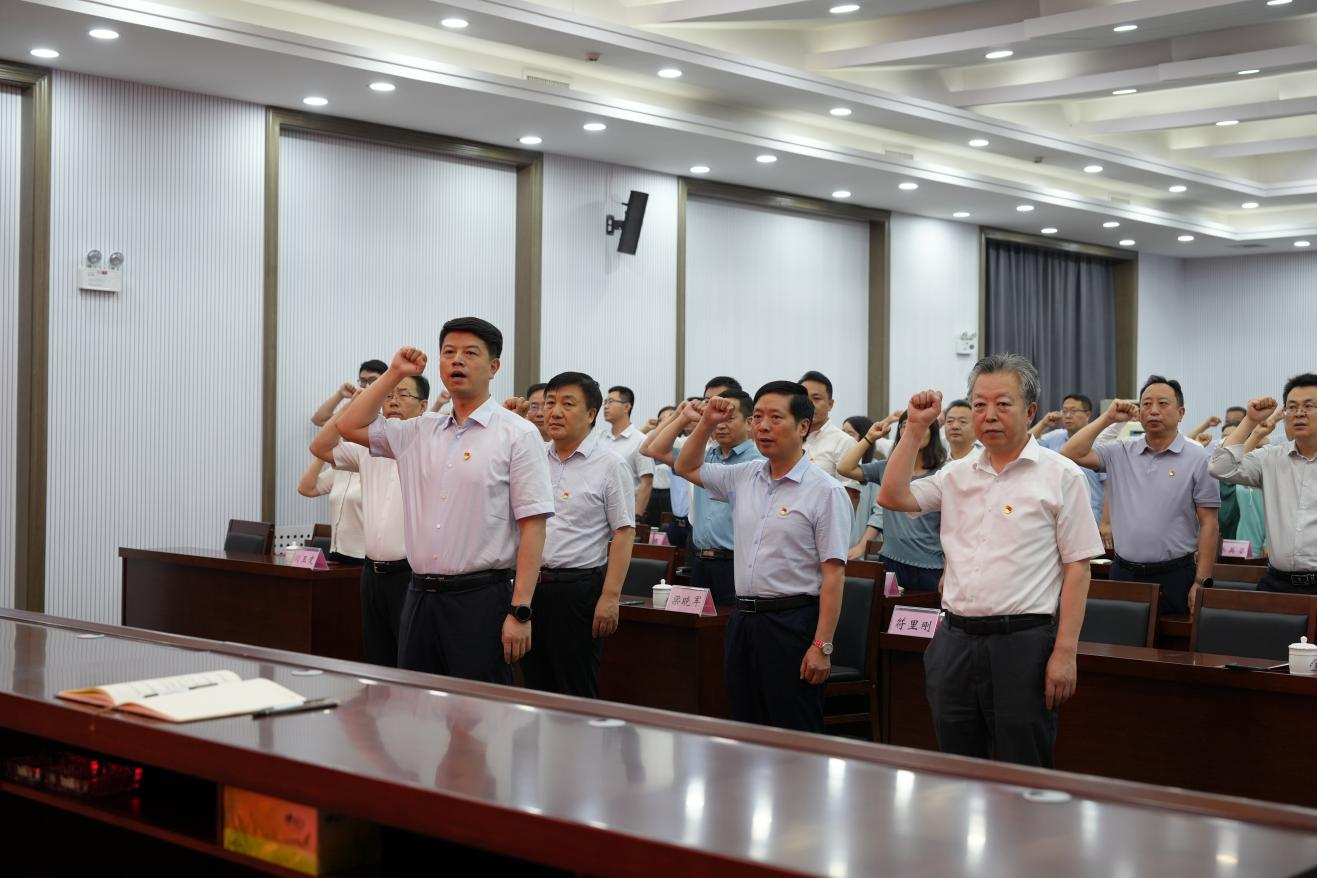 國歌嘹亮,誓言鏗鏘。大會在雄壯的國歌聲中拉開帷幕,全體參會人員莊嚴(yán)肅立,齊唱國歌。隨后在黃巍同志的領(lǐng)誓下,全體黨員面向黨旗,高舉右拳,莊嚴(yán)宣誓?,F(xiàn)場鏗鏘有力的宣誓聲,既傳達出身為共產(chǎn)黨員的自豪感和使命感,也表明了大家堅定不移聽黨話、跟黨走的決心和信念。